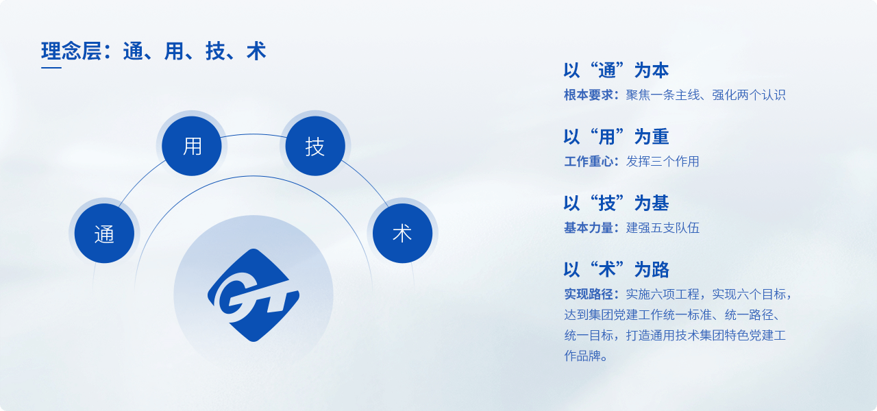 通用技術集團黨組堅持以習近平新時代中國特色社會主義思想為指導,深入學習貫徹黨的二十大精神,切實加強黨的全面領導,深入推進黨的建設,把抓黨建強黨建作為重大政治責任,以政治建設為統領,以堅定理想信念為根基,以提升組織力為重點,著力發揮各級黨組織作用,促進經營管理,總結提煉形成通用技術集團“123566”黨建工作體系,推動黨建業務同頻共振、融合發展,以高質量黨建引領保障高質量發展,全力打造世界一流企業。