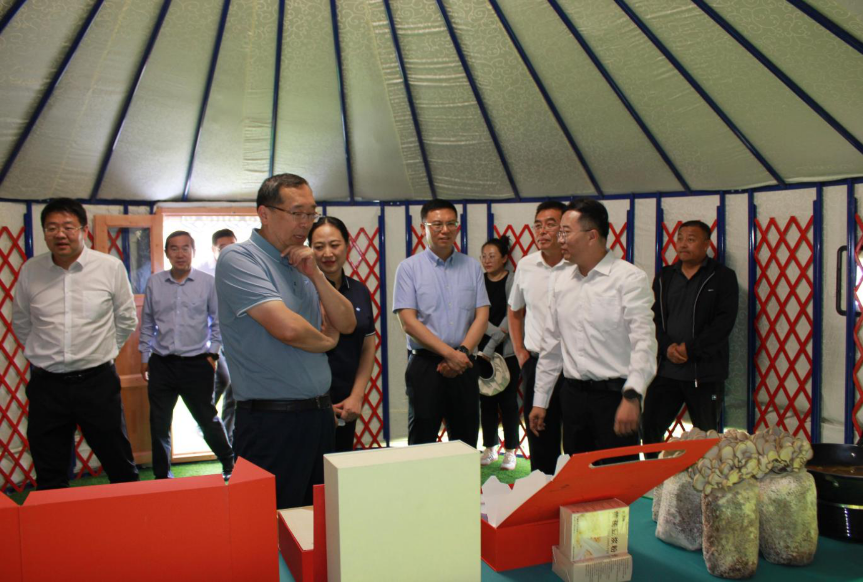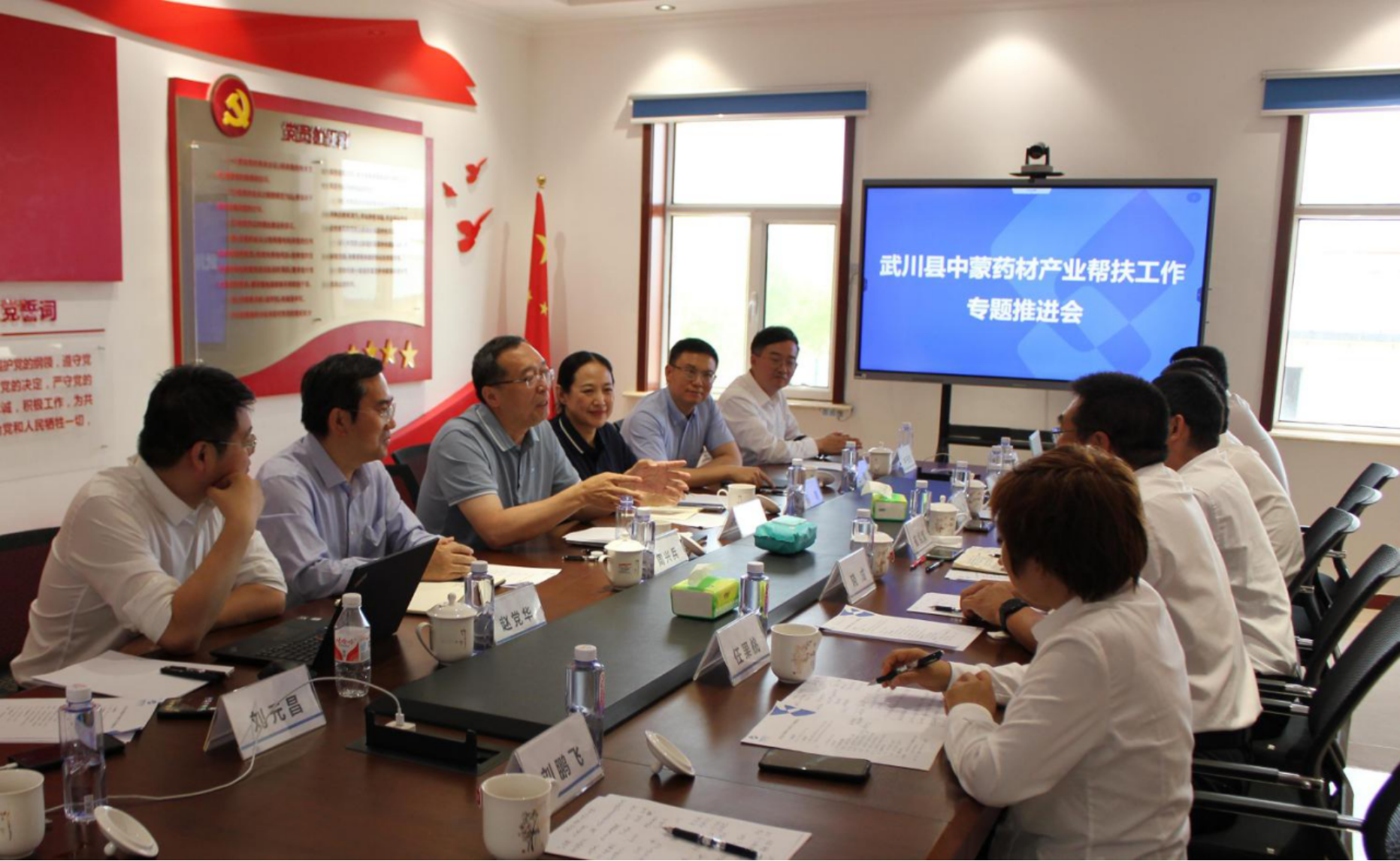 6月28日,通用技術集團黨組副書記、董事張振戎帶隊赴內蒙古自治區呼和浩特市武川縣調研中蒙藥材產業幫扶工作。調研組一行參觀了武川縣城市規劃展覽館,調研考察了內蒙古通用中藥有限公司(金三角園區新址)和中蒙藥材科技小院,召開了中蒙藥材產業幫扶工作專題推進會,聽取有關工作匯報,圍繞武川縣中蒙藥材產業幫扶未來規劃和當前困難進行深入交流。張振戎從加強產業幫扶平臺公司戰略發展規劃、市場競爭力和品牌建設等三個方面對下一步產業幫扶工作提出具體要求。通用技術中國醫藥、集團黨群工作部負責同志,集團掛職干部陪同調研。