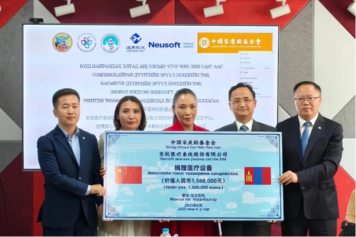 6月20日,在蒙古國烏蘭巴托松根海爾汗區綜合醫院舉行了一場意義深遠的醫療設備捐贈儀式。通用技術集團、東軟醫療聯合中國宋慶齡基金會向蒙古國捐贈了三套東軟醫療NeuVision 850高端能譜DR設備,以實際行動共筑"健康絲綢之路",踐行央企責任擔當,為中蒙兩國醫療合作寫下生動注腳。